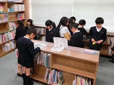 最近に追加購入した「かいけつゾロリ」や「サバイバル」シリーズは人気が高く、子どもたちが書架の前に集まっていました。