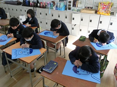 2時間連続の、2時間目の途中に取材に行ったのですが、力を入れて掘り進めていたのか、何人のも児童が「指、痛〜い。」と、言っていました。