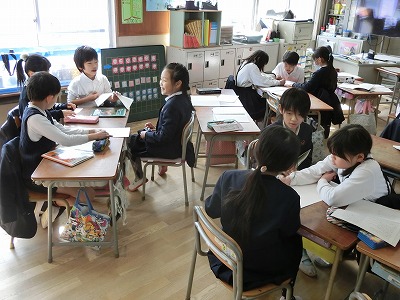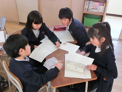 子どもたちはグループで相談し、2つのグループを除き、多くのグループが「ちぃちゃんが かげおくりすることで 家族に会える話」と、良かった話ととれる発表でした。