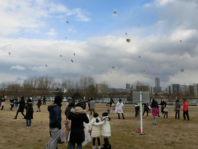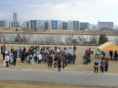 2月11日(日)の午後1時半から、淀川の河川敷で第22回目の東淀川区子ども凧あげ大会が開催されました。