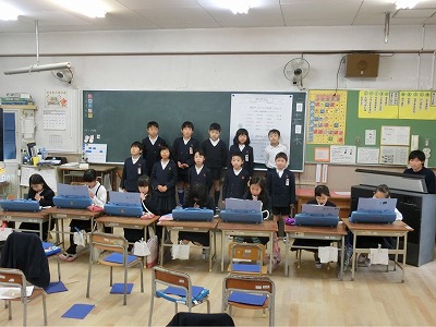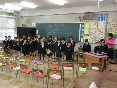 前半は、生まれたころや小さいころのエピソード、名前の付いた由来などを作文にまとめて、一人ずつ発表していました。大型モニタに映し出される赤ちゃんの時など、小さいころの写真がとてもかわいかったです。中盤はグループごとに覚えた詩を発表です。後半は音楽で、合唱や合奏の発表でした。