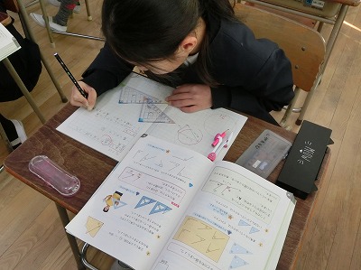 「三角形を調べよう」の単元で、今日は「角」についての学習をクラス2分割で行っていました。