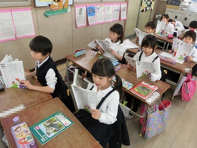 読み物題材の「スイミー」の学習に入りました。全部で12ページもありましたが、宿題で読み込んでいるのか、音読では大きな声で、スラスラと読めていました。