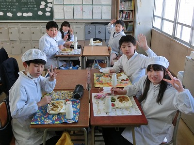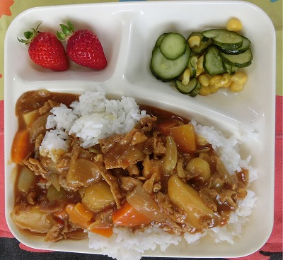 デザートにはイチゴが2個ずつありました。とっても甘く、酸味もいい感じにあり、おいしかったですが、「2個じゃ、足りな〜い!!」が、子どもたちの大半の意見です。おかわりじゃんけんで3個目をゲットできた子はいいのですが、大阪市さん、せめて4〜5個にしてあげてください。