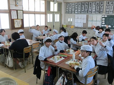 大盛り・お替りもたくさんしてくれて、やはりカレーライスは大人気です。写真はお替り後の大盛りカレーです。6年生では、これが当たり前、もっと大盛りの子もいます。