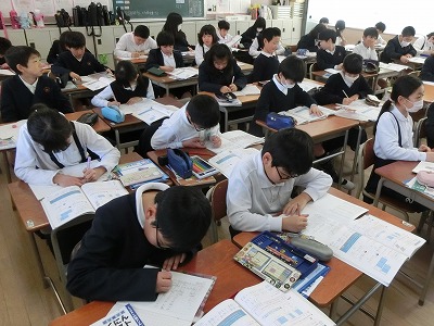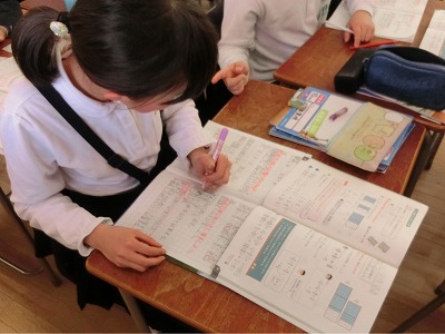 また、分母が同じ仮分数や帯分数でのたし算や引き算の計算もあります。今日はたし算の問題をたくさんしていました。