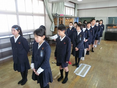 在校生代表として、気持ちもこもり、姿勢もばっちり、動きも機敏で、4月からの最高学年を任せられるように成長してきました。