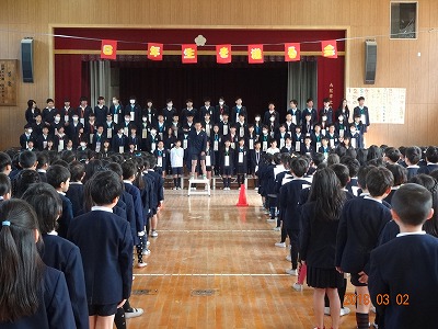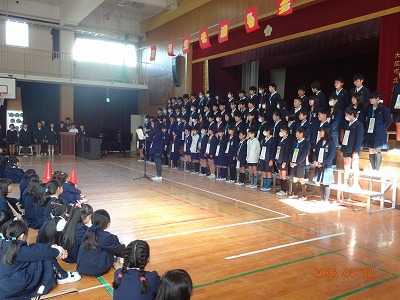 6年生の代表の児童さんが、在校生と教職員に対して「感謝の言葉」を言いました。