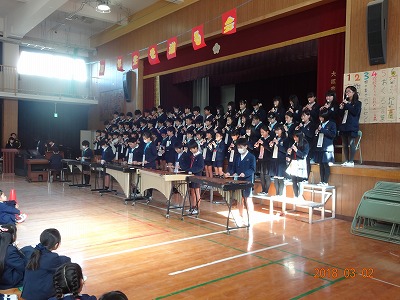 5年生は、「卒業式」という詩の群読。次に「ビリーブ」を歌いました。大きな透き通るような声を聴かせてくれました。