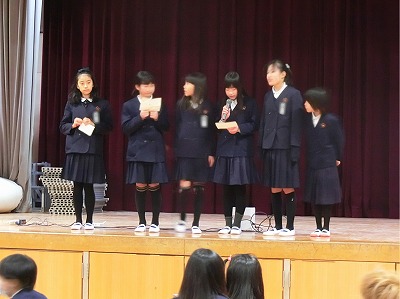 給食が終わり、茶話会の始まる前からハイテンションで、終始、笑いが絶えませんでした。普段見せない6年生の一面が見られ、とっても良かったです。でも、忙しい中、どこで練習をしてきたのでしょうか? 大いに笑わせていただきました。とても芸達者な子どもたちでした。