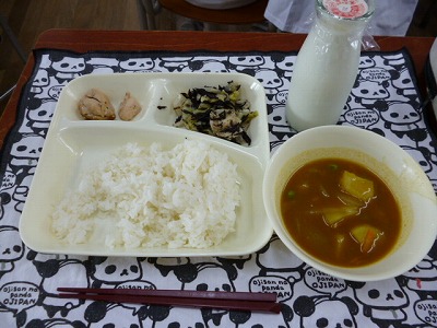 低学年の中には、少し辛いと言っている児童もいましたが、やはり、カレーは大人気です。 スープなのに、中にご飯を入れて「スープカレーライス」にしておいしそうに食べている児童も多かったです。