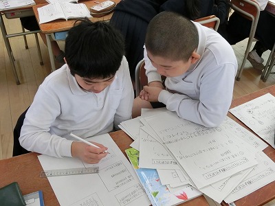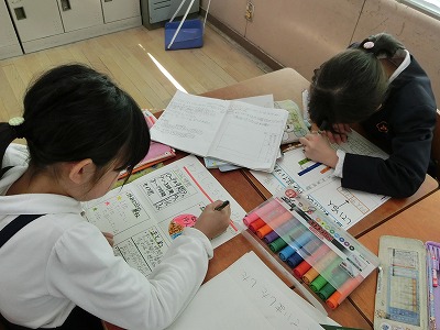 子どもたちは、「わたしたちと○○○」と、調べたいことをグループで決めて、資料集めのためにアンケートを作り、クラスのみんなに答えてもらいました。