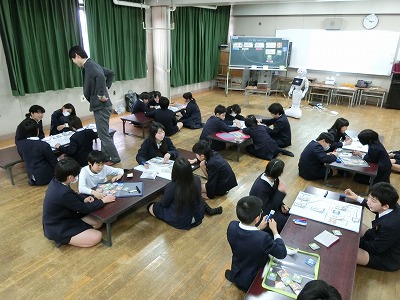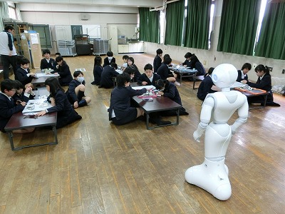 さあ、講師の方の説明を聞いて、班ごとに、ペッパー君を動かすためのプログラムをフローチャートで考えていきます。
