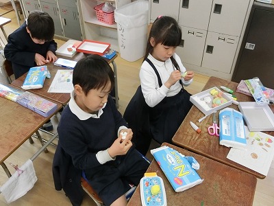 子どもたちは、自分の好みとする「お弁当」を、紙にスケッチし、今日から紙粘土を使ってのお弁当作りです。
