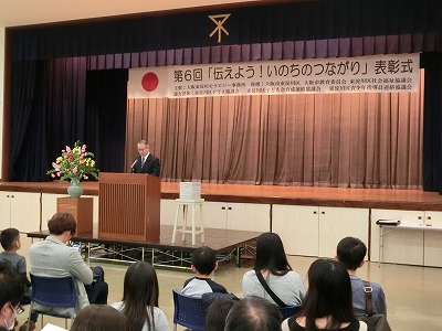 今日、午後2時より、東淀川区民ホールで「第6回 伝えよう! いのちのつながり」作文の表彰式がありました。