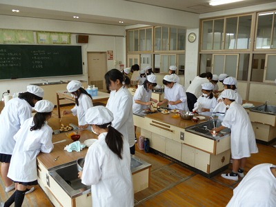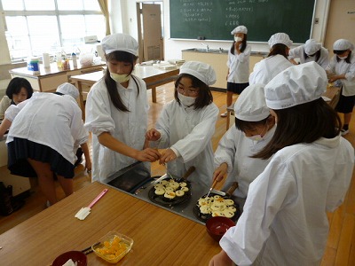 今日はお菓子作りでした。家庭科室はとっても甘い香りが充満し、みんな出来上がりを楽しみにしていました。