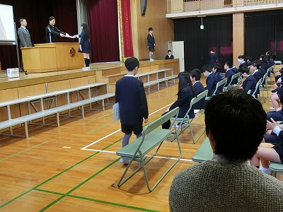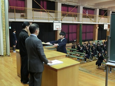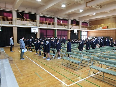 2時間目から卒業式の予行を行いました。当日の係り分担の先生方もリハーサルです。