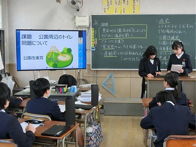 今日は、豊新小 疑似議会の開催、各党からのプレゼン発表となりました。ちゃんと議長さんもいますよ。