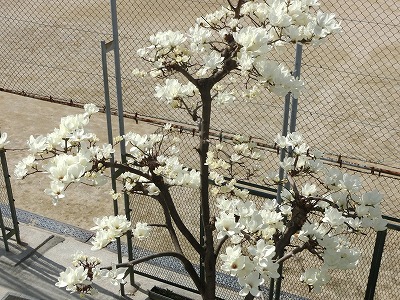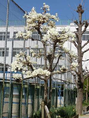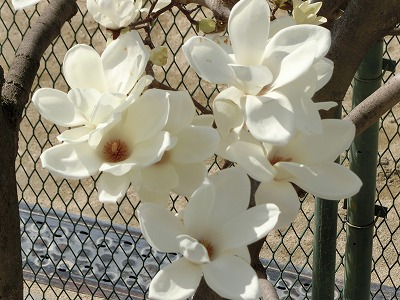 ハクモクレンの開花時期はとっても短いのです。たった、2〜3日で花弁が茶色く染色し、落ちてしまいます。機会があれば、いい時期に見に来てください。