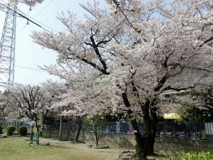 とうとう、豊新小学校内の桜が満開となってしまいました。また、一部の桜は、残念ながら、すでに散り初めです。