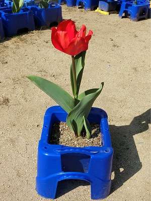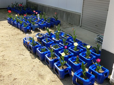 最後の、校内巡回をしていると、校舎裏では、2年生が育てていたチューリップも花をつけていました。
