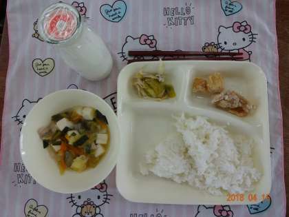 鶏肉のからあげは、外側はカリッと内側はジューシーです。子どもたちにも大人気です。