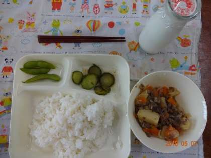 きゅうりのかつお梅風味は、かつおぶし、梅肉、砂糖、酢、うす口しょうゆで味つけをします。さっぱりとした味わいで美味しくいただきました。