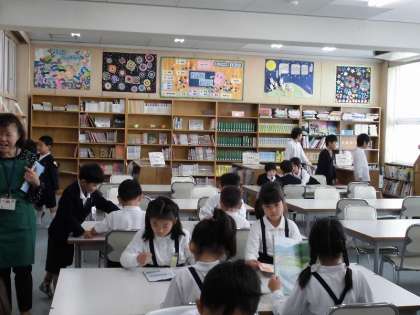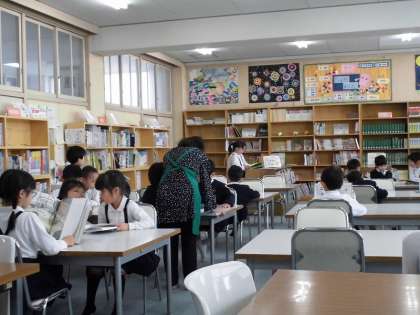 チャイムが鳴ると図書室へ駆け込んでくるこどもたち。
