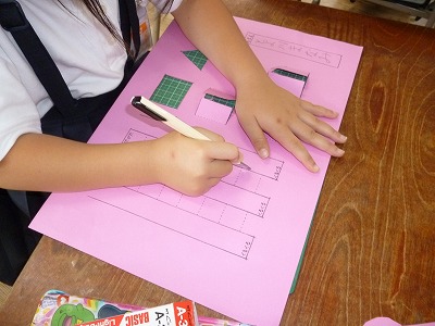 2年1組が図工の時間に「カッターナイフ」を使って作業をしていました。
