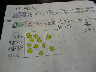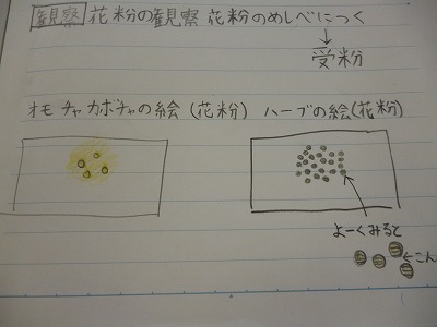 顕微鏡で観察後は、花粉の様子をしっかりとスケッチです。