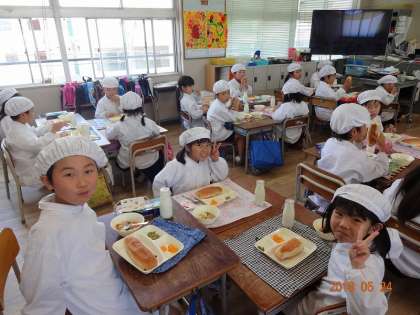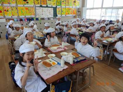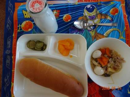 八宝菜には、豚肉、うずら卵、たまねぎ、キャベツ、にんじん、たけのこ、ピーマン、しいたけの8種類の食材が入っています。今日は、うずら卵を除いたものが個別対応献立の「うずら卵除去食」となっています。とろみもしっかりとついていて美味しかったです。
