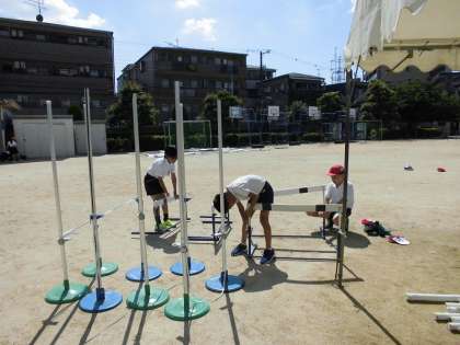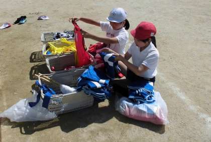 準備係の児童は、ゼッケンの整理をしたりハードルの準備をしたり当日、手際よくできるように活動していました。