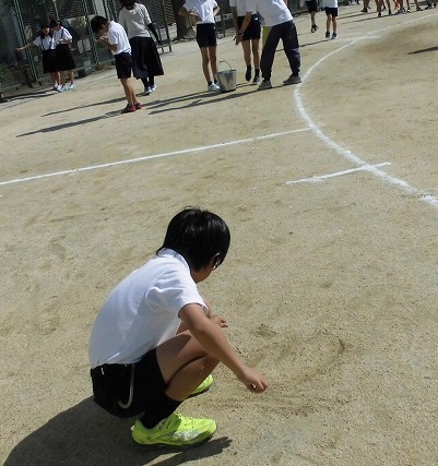 早く終わった児童は、石ひろいをして運動場の整備に協力してくれました。