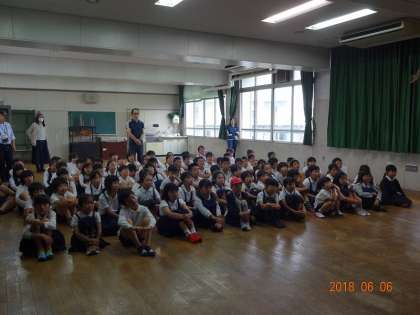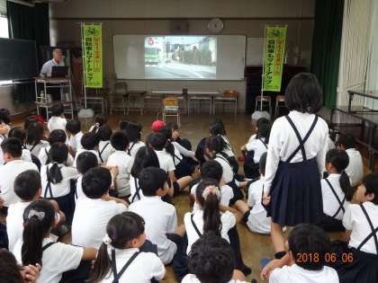 区役所の担当の方が来られて、交通安全について注意することなどを学びました。