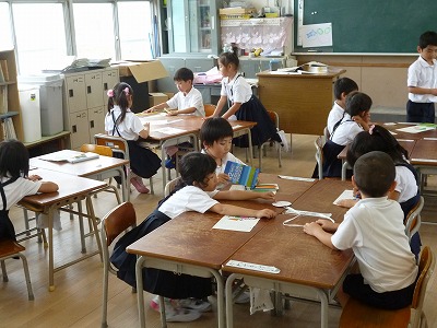 1年1組が国語で「こえのゆうびんやさん」という授業をしていました。