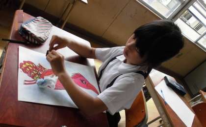 最後に背景を、パスを粉々にして、にじみやぼかしをうまく使って仕上げることができました。