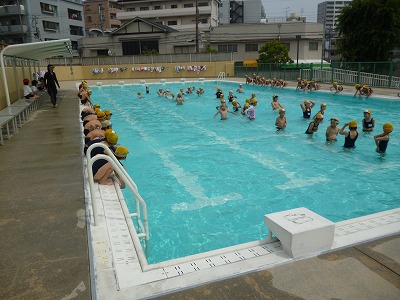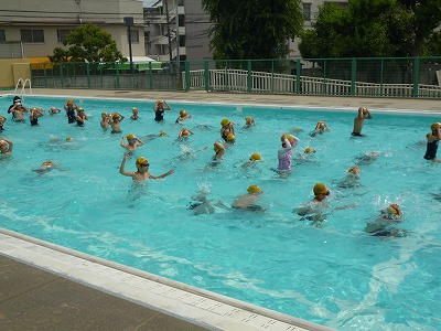 2年生の最初の授業のため、水に慣れることに重点を置き、音楽に合わせて、水中でダンスを踊ったり、潜ったりしました。