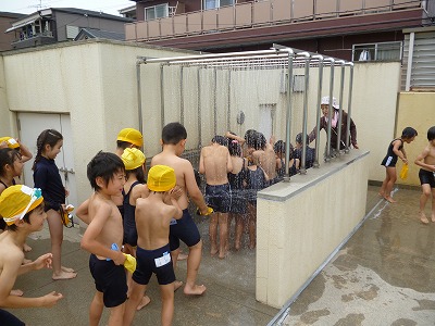 昨日より豊新小学校はプール開きでしたが、1年生は今日が初めてのプール学習となりました。