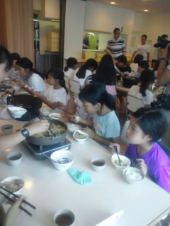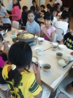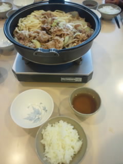 すき焼きです。うどんも入ってとても美味しくいただきました。ご飯を7杯もおかわりした人もいました。