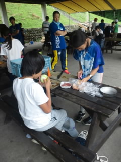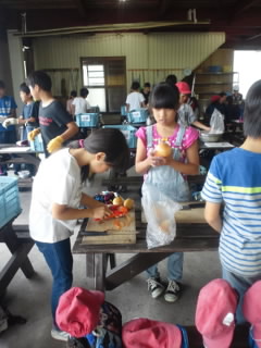 昼食のカレー作りです。