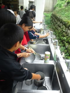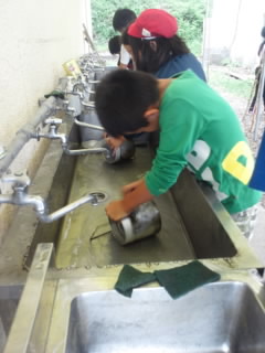 後かたづけけもしっかりがんばっています。飯ごうや鍋もしっかり洗ってくれました。