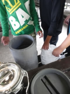 オレンジの皮をむき、薄皮を取りオレンジジュースに混ぜます。砂糖を適量加え、密閉容器に入れます。