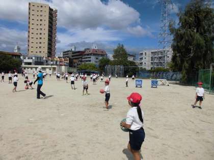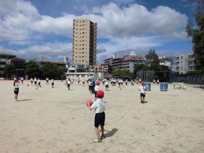ボールをしっかりもって、頑張って投げました。まだまだ苦手な子もいますが、