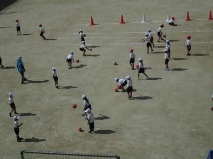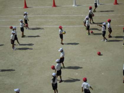 最後には、コーンに向かって投げて、的あてを楽しんでいました。