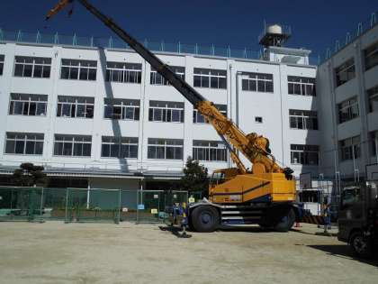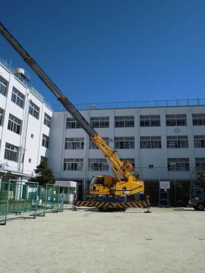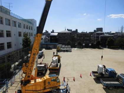 校舎の上まで運ぶのはとても大変ですが、このクレーンを使うとすぐに運べました。