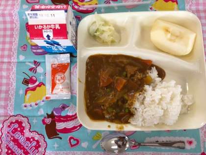 カレールーの素には小麦粉が使われていますが、今日は、小麦粉の代わりに米粉が使われています。ノンエッグドレッシングは、マヨネーズのような味がしますが、卵を使っていないマヨネーズ風の調味料です。