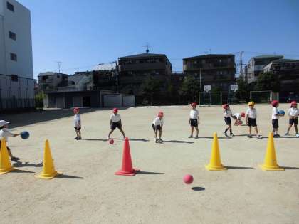 どの場所を当てるとうまく倒れるかを考えて投げています。