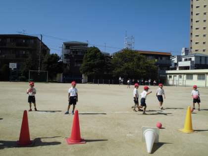 徐々にうまくなってきて、的が倒れるようになってきました。