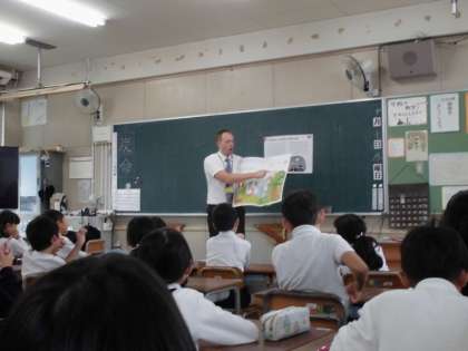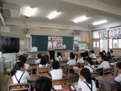 今日は3年生に、イーオンから英語の先生をお招きし、英語の学習を行いました。
