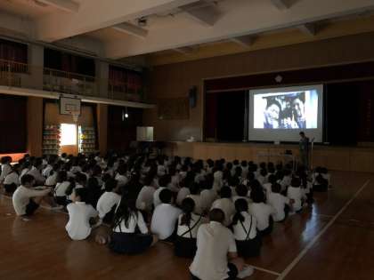 5時間目に講堂で、警察の方によるインターネット利用教室が開かれました。